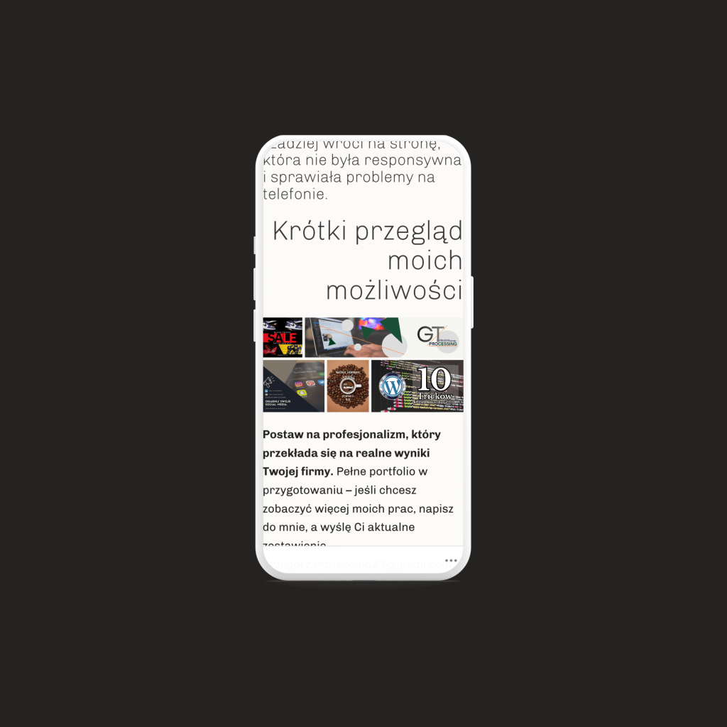 Postaw na profesjonalizm, który przekłada się na realne wyniki Twojej firmy. Pełne portfolio w przygotowaniu – jeśli chcesz zobaczyć więcej moich prac, napisz do mnie, a wyślę Ci aktualne zestawienie. – grzegorz.trzaskoma21@gmail.com